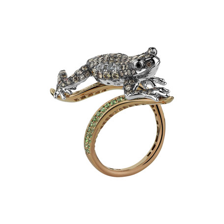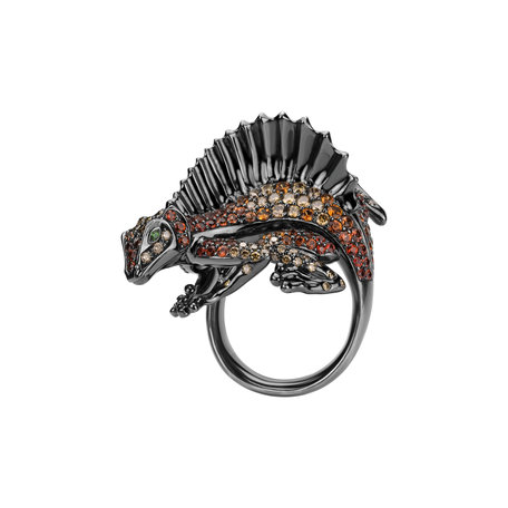 Prsten s hnědými diamanty a granáty Diamond Lizard