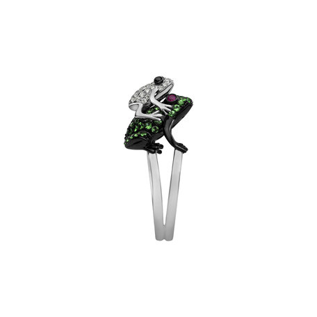 Prsten s diamanty a smaragdy a rubíny Black Croco
