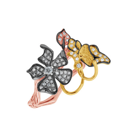 Prsten s černými a bílými diamanty a safíry Magical Swan