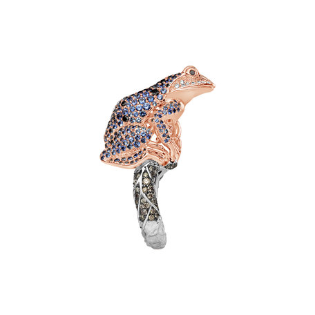 Prsten s diamanty, safíry a rubíny Blue Frog