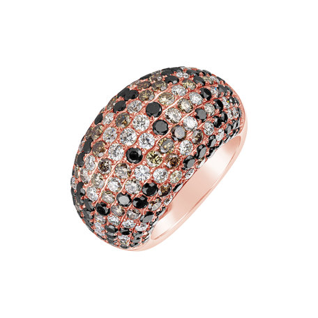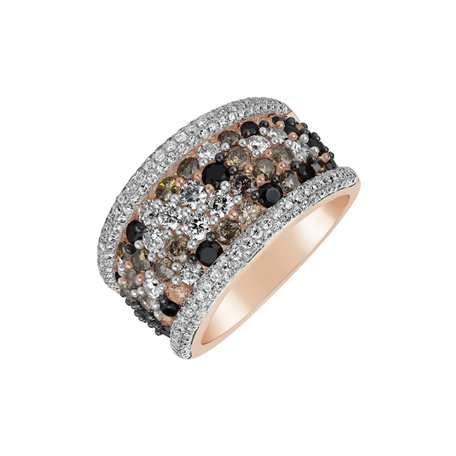 Prsten s bílými, hnědými a černými diamanty Magic Fall