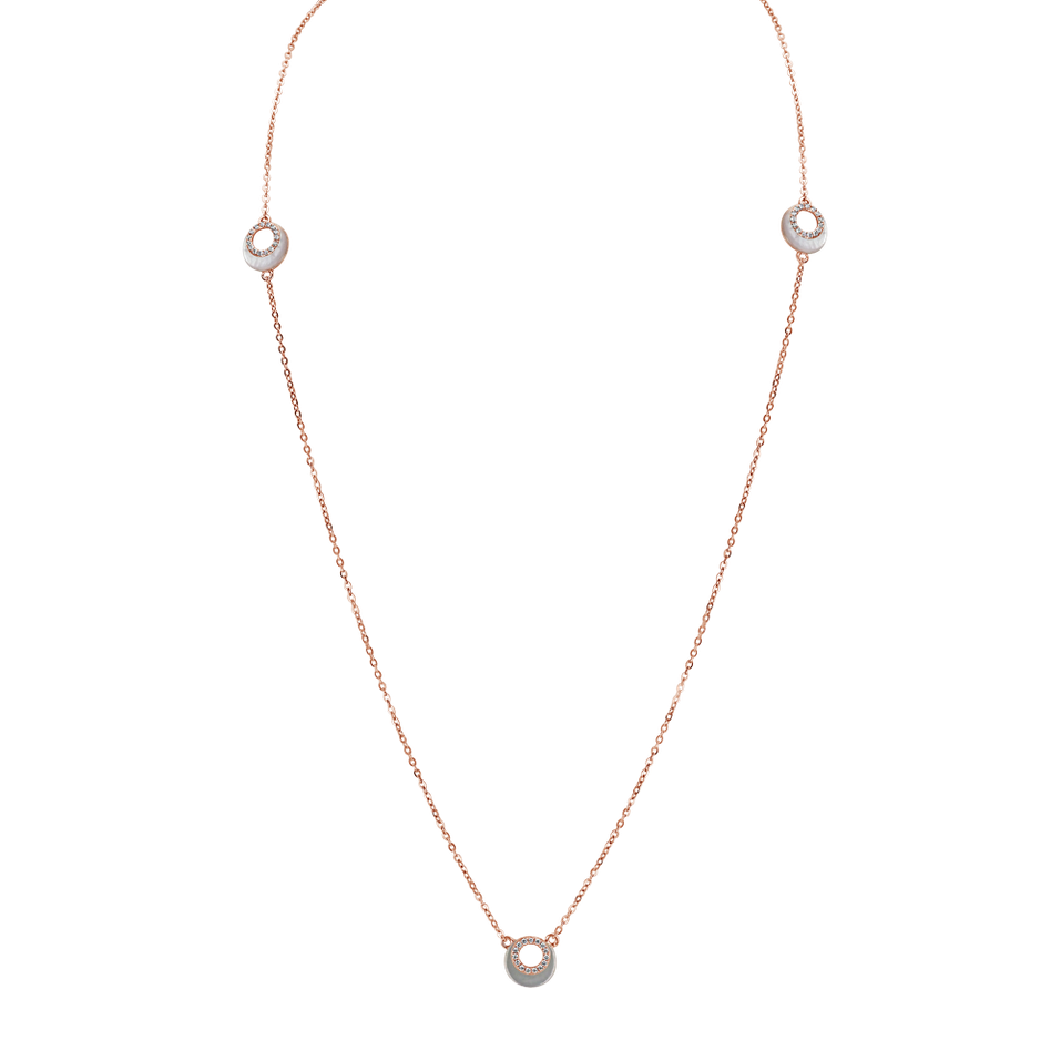 Tento náhrdelník z 18kt růžového zlata osazený diamanty a perletí je jako záhadný večerní příběh plný tajemství a kouzla. Jeho jedinečný design je symbolem vnitřní síly a nekončící elegance. Šperk je součástí kolekce Charming.