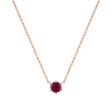 Rubín a 14kt růžové zlato v tomto náhrdelníku tvoří harmonický duet krásy a luxusu. Rubín symbolizuje vášeň a sílu. Nosíte-li tento klenot, vždy budete vyzařovat šarm a sofistikaci. Šperk je součástí kolekce Classic First.