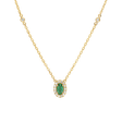 Náhrdelník z 14kt žlutého zlata s diamanty a smaragdem je jako hlas věčného květu, přinášející pohádkovou krásu a sílu. Tento klenot je určen pro ty, kdo si cení elegance a tajemství přírody. Šperk je součástí kolekce Diana.