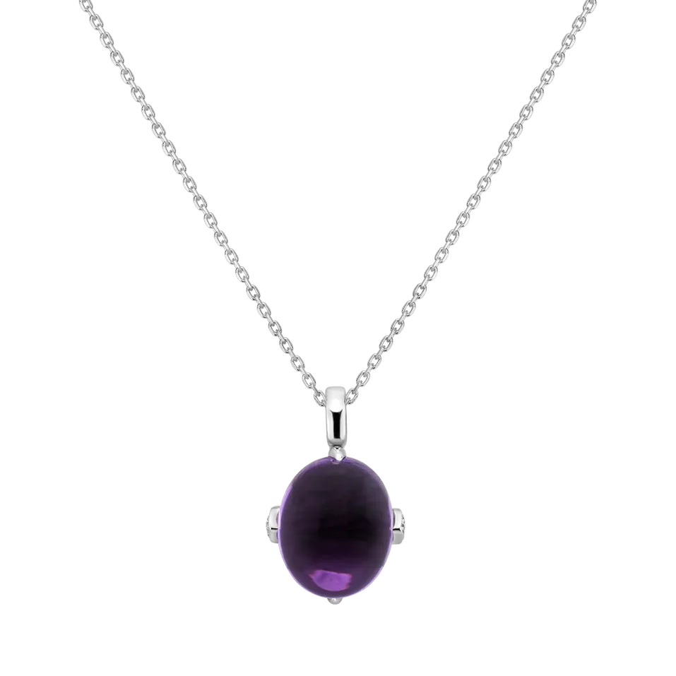 Mistrovský kousek z 14kt bílého zlata s diamanty a ametystem brazil, jenž je jako sen, který se stal skutečností. Jeho oslňující provedení je projevem vítězství a odvahy v každém okamžiku života. Šperk je součástí kolekce Blossoms. Kolekce inspirovaná rozkvetlými sady a zahradami. Hlavní roli v ní ztvárňují barevné drahokamy s polokulatým brusem cabochon. Modré topazy, fialové ametysty, zelené chalcedony a další drahokamy jsou zasazené do prstenů, náušnic a přívěsků z bílého, žlutého a růžového zlata. Oblé tvary šperků i samotných kamenů jsou ztělesněním nadčasovosti a jemné ženské energie. Společnost ALO diamonds vyrábí v Čechách šperky z diamantů a drahých kamenů už téměř 30 let. Každý šperk je tak originál a je také opatřen certifikátem pravosti a dodán v luxusním balení. Ať už vybíráte zásnubní prsten nebo diamantový náramek či náhrdelník, nedarujete s námi pouze šperk, ale také chytrou investici. Přívěsek je dodáván bez řetízku. Řetízek je možné doobjednat na posta@alo.cz