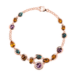 Exkluzivní náramek z růžového zlata, který je delikátně zdobený pestrobarevnou mozaikou tvořenou čirými diamanty a noblesními ametysty, citríny, topazy v barvách duhy.