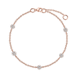 Tento náramek z 14kt růžového zlata s diamanty je jako kruhový tanec vášně a elegance. Jeho design je tak jednoduchý, ale zároveň tak výrazný, že vás okouzlí na první pohled. Buďte zářící hvězdou ve světě luxusu. Šperk je součástí kolekce Mirage.