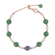 Náramek 18kt růžové zlato s jadeitem, jadeitem green a sladkovodní bílou perlou, který je jako symfonie světla a elegance. Jeho nádherný design představuje cestu k úspěchu, plnou krásy a jemných tónů. Šperk je součástí kolekce Fantasy.