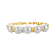 Náramek 18kt žlutého zlata s diamanty a sladkovodní bílou perlou symbolizující krásu a čistotu. Jeho svůdný třpyt je jako oslava úspěchu a elegance, ideální pro ty, kteří si cení rafinovanosti a stylu. Šperk je součástí kolekce Ocean & River.
