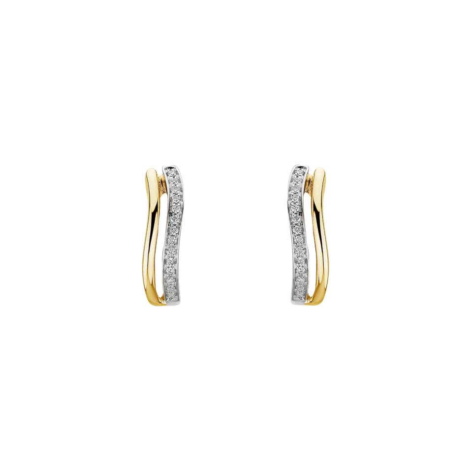 S těmito náušnicemi z 14kt žlutého a bílého zlata s diamanty bude každý váš krok doprovázen bezchybným třpytem, který vypráví příběh opravdové elegance. Šperk je součástí kolekce Essential.