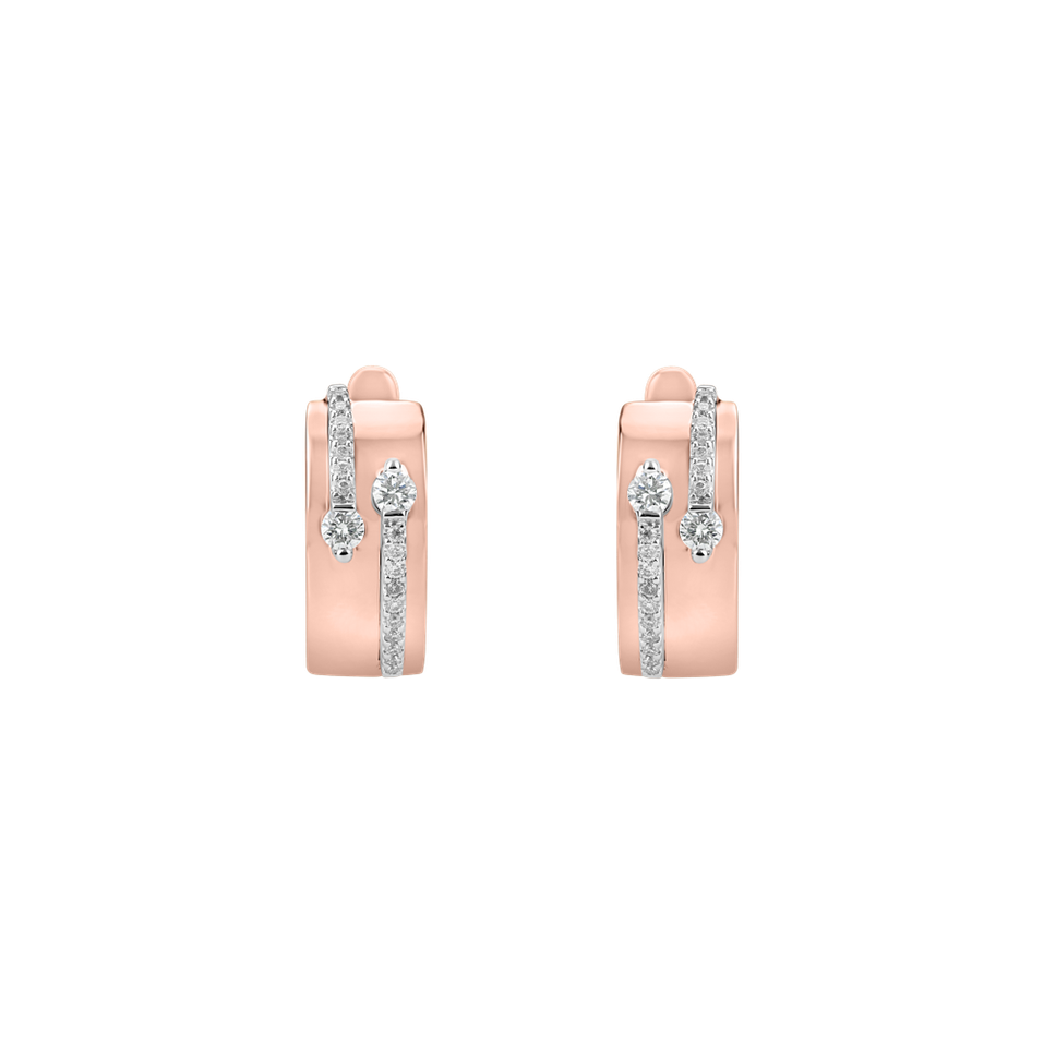 Náušnice 14kt růžového a bílého zlata s diamanty, symbol výjimečnosti a elegance. Jeho záře je jako slunce, které osvětluje cestu k úspěchu a splněným snům. Šperk je součástí kolekce Essential.