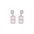 Reprezentativní závěsné náušnice v originálním stylu. Šperk s výraznou geometrickou siluetou ze žlutého zlata, která obklopuje výrazné plastické detaily z bílého zlata dekorované 80 čirými diamanty.