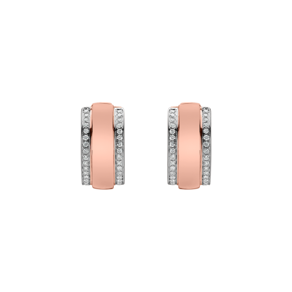Náušnice 14kt růžového a bílého zlata s diamanty, symbol výjimečnosti a elegance. Jeho záře je jako slunce, které osvětluje cestu k úspěchu a splněným snům. Šperk je součástí kolekce Essential.