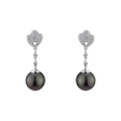 Odvaha a něžnost vyzařují z těchto náušnic z 18kt bílého zlata s diamanty a mořskou černou perlou, která ukrývá příběhy nefalšované ženskosti. Šperk je součástí kolekce Ocean & River.