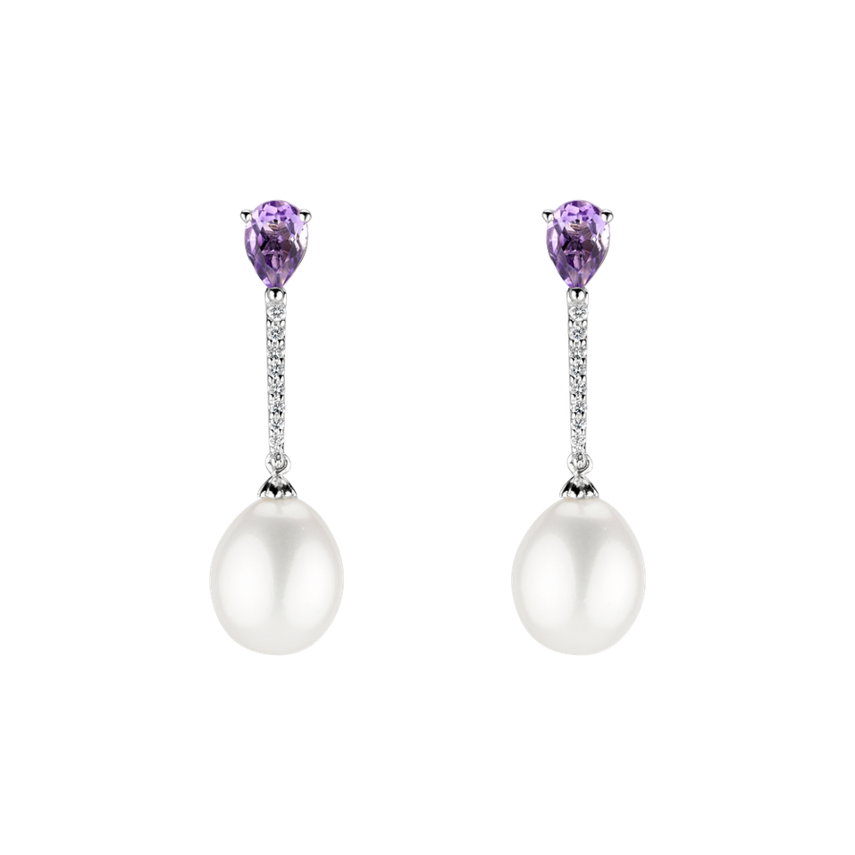 Náušnice s perlou, diamantem a ametystem Ocean Beauty
