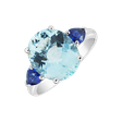 Prsten 14kt bílé zlato s akvamarínem a safírem Cissitha
