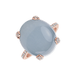 Jemnost a eleganci v sobě snoubí tento prsten z 14kt růžového zlata s diamanty a akvamarínem. Jeho subtilní design je dokonalým doplňkem pro každou významnou příležitost, dodává šmrnc a zároveň zdůrazňuje jemnou krásu nositelky. Šperk je součástí kolekce Blossoms.
