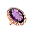 Každý váš pohyb bude nyní doprovázen okouzlujícím zábleskem diamantů pečlivě vsazených do nádherného prstenu z 18kt růžového zlata, který zdobí ametysty afrického původu. Tento klenot, který překypuje elegancí a sofistikovaností, je jako stvořený pro zdůraznění vaší jedinečnosti. Šperk je součástí kolekce Fantasy.