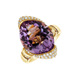 Svěží a oslnivý. Tento prsten z 18kt žlutého zlata s diamanty a ametystem pink je jako ranní rozednění. Jeho něžná, ale výrazná barva a jasné diamanty odrážejí světlo úspěchu a krásy. Šperk je součástí kolekce Fantasy.