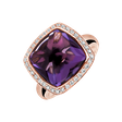 Prsten z 18kt růžového zlata s diamanty a ametystem brazil je jako jasný den s nádechem exotiky. Jeho diamanty a ametyst brazil vytvářejí kombinaci, která dodá šperku nádhernou energii. Šperk je součástí kolekce Blossoms.