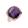 Prsten z 18kt růžového zlata s diamanty a ametystem brazil je jako jiskra věčného plamene - plný energie a síly. Tento klenot je určen pro ty, kteří hledají v životě něco neobyčejného. Šperk je součástí kolekce Blossoms.