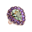 Tento prsten z 18kt růžového zlata, v němž se snoubí diamanty, ametyst green a ametyst african, je svědectvím hlubokých citů a unikátního stylu, který vás nikdy nezradí. Jeho nadčasový design a luxusní krása z něj činí nejen elegantní šperk, ale i věrného společníka na cestě vašeho života. Šperk je součástí kolekce Fantasy.