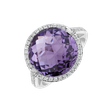 Elegantní prsten z 18kt bílého zlata, ozdobený diamanty a ametystem brazil - pro ty, kteří si chtějí dopřát opravdový klenot plný vznešenosti. Šperk je součástí kolekce Fantasy.