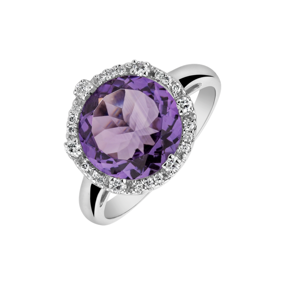 Ukažte svůj vkus prstenem z 18kt bílého zlata, jehož půvab diamantů je umocněn tajemným ametystem brazil, který přináší do vašeho života nádech exkluzivity a elegance, který vám zaručeně zvedne náladu a připomene vám krásu přírody kdykoli se na něj podíváte. Šperk je součástí kolekce Fantasy.