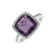 Tento prsten z 18kt bílého zlata s diamanty a ametystem brazil je ztělesněním něžnosti a elegance - nádherný doplněk, který dodává vašemu outfitu punc luxusu a sofistikovanosti. Šperk je součástí kolekce Fantasy.