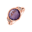Prsten 18kt růžového zlata s diamanty a ametystem brazil symbolizující duchovnost a intuici. Jeho svůdný třpyt je jako oslava mystiky a originality, ideální pro ty, kteří si cení osobního rozvoje. Šperk je součástí kolekce Fantasy.