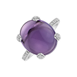 Jemnost a eleganci v sobě snoubí tento prsten z 14kt bílého zlata s diamanty a ametystem african. Jeho subtilní design je dokonalým doplňkem pro každou významnou příležitost, dodává šmrnc a zároveň zdůrazňuje jemnou krásu nositelky. Šperk je součástí kolekce Blossoms.