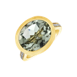 Exkluzivní prsten v 18kt žlutém zlatě zdobený diamanty a ametystem green, je mistrovským dílem šperkařského umění. Jeho jedinečný design a neobyčejná krása ametystu green odhalují skutečnou eleganci. Šperk je součástí kolekce Fantasy.