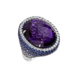 V tomto prsteni z 18kt bílého zlata osazeném diamantem, safírem a ametystem african se snoubí křehkost s trvalostí a představuje pozdrav od samotné krásy. Jeho nádherná kombinace s vámi bude po celý život. Šperk je součástí kolekce Fantasy.