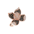 Objevte spojení teplého třpytu 18kt růžového a černého zlata a oslnivých hnědých diamantů, které tvoří symfonii světla a elegance v tomto luxusním prstenu. Hýčkejte svůj smysl pro krásu touto jemnou poctou úspěchu a sofistikovanosti. Šperk je součástí kolekce Flowers.