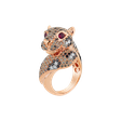 Prsten 18kt růžové zlato s černými a hnědými diamanty a rubínem je jako poklad ztraceného království. Jeho třpytivé diamanty a vzácný rubín jsou jako nejhodnotnější klenoty symbolizující luxus, moc a lákavou krásu. Šperk je součástí kolekce Animals.