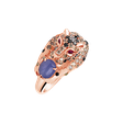 Prsten z 18kt růžového zlata, zdobený černým a hnědým diamantem, safírem a rubínem, je vyjádřením luxusu a jedinečného vkusu. Jeho design vás okouzlí. Šperk je součástí kolekce Animals.