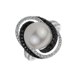 Prsten s černými a bílými diamanty a perlou Vortex of Emotions
