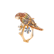 Prsten vyrobený z 18kt růžového a bílého zlata s diamantem, safírem multicolor a granátem green nesou v sobě nadčasovou krásu. Jeho subtilní třpyt diamantů, krásného safíru a granátu dodává tomuto prstenu jedinečnou eleganci. Šperk je součástí kolekce Animals.