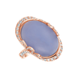 Exkluzivní prsten v 14kt růžovém zlatě zdobený diamanty a modrým chalcedonem, je mistrovským dílem šperkařského umění. Jeho jedinečný design a neobyčejná krása modrého chalcedonu odhalují skutečnou eleganci. Šperk je součástí kolekce Blossoms.