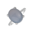 Tento nádherný prsten z 14kt bílého zlata s diamanty a modrým chalcedonem je šperkem plným eleganci a krásy. Chalcedon modrý symbolizuje klid a mír, a diamanty dodávají prstenu nádherný lesk a světlo. To je šperk pro ty, kteří hledají klid a krásu v jednom šperku. Šperk je součástí kolekce Blossoms.