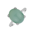 Tento nádherný prsten z 14kt bílého zlata s diamanty a tyrkysovým chalcedonem je šperkem plným elegance a exotiky. Tyrkysový chalcedon symbolizuje ochranu a štěstí, a diamanty dodávají prstenu nádherný lesk a světlo. To je šperk pro ty, kteří hledají neobvyklý a krásný šperk. Šperk je součástí kolekce Blossoms.