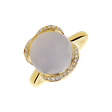 Tento prsten z 14kt žlutého zlata s diamanty a chalcedonem modrým je vyjádřením vašeho jedinečného stylu a vkusu. Chalcedon modrý přináší do vašeho života klid a krásu, zatímco diamanty dodávají prstenu nezaměnitelný lesk. Šperk je součástí kolekce Blossoms.