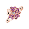 Diamanty, safír a preciznost. Prsten z 18kt růžového zlata s diamantem a safírem pink je mistrovským dílem ruční práce a ozdobou pro ty, kteří znají hodnotu pravé krásy a síly. Šperk je součástí kolekce Flowers.