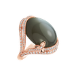 Zdobná silueta z růžového zlata objímá dohladka vybroušený modrý chalcedon a tvoří tak unikátní kompozici prstenu Princess Mystery. Velkolepou kompozici dotváří něžně třpytivé diamanty, díky nimž prsten září na všechny strany.