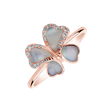 Tento prsten z 18kt růžového zlata osazený diamanty a perletí je jako záhadný večerní příběh plný tajemství a kouzla. Jeho jedinečný design je symbolem vnitřní síly a nekončící elegance. Šperk je součástí kolekce Animals.