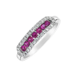 Nádherný prsten z 14kt bílého zlata zdobený diamanty a vznešeným rubínem. Tento šperk je mistrovským dílem, které bylo vytvořeno tak, aby zanechalo vaše okolí bez dechu. Rubín dodává prstenu krásu a vášeň, která okouzlí každého. Šperk je součástí kolekce Charming.