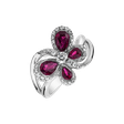 Prsten z 18kt bílého zlata s diamanty, jehož krásu zdůrazňuje nádherný rubín, je symbolem elegance a nadčasové krásy. Jeho rafinovaný design a zářivost rubínu přináší pocit luxusu a výjimečnosti. Šperk je součástí kolekce Animals.
