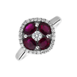 Lyrika třpytu, poezie elegance: tento prsten z 18kt bílého zlata s diamanty a rubínem je skladbou napsanou jen pro vás a vaši přirozenou krásu. Šperk je součástí kolekce Charming.