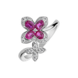 Prsten 18kt bílé zlato s diamanty a rubínem jako básník, který vypráví příběh krásy a elegance. Jeho nádherný design je jako sonet o úspěchu a dokonalosti. Šperk je součástí kolekce Flowers.
