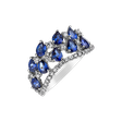 Elegantní prsten z 18kt bílého zlata, zdobenými diamanty a safírem, je symbolem sofistikovanosti a nadčasové krásy. Jeho lesklý povrch a nápaditý design představují dokonalost v každém detailu. Šperk je součástí kolekce Charming.